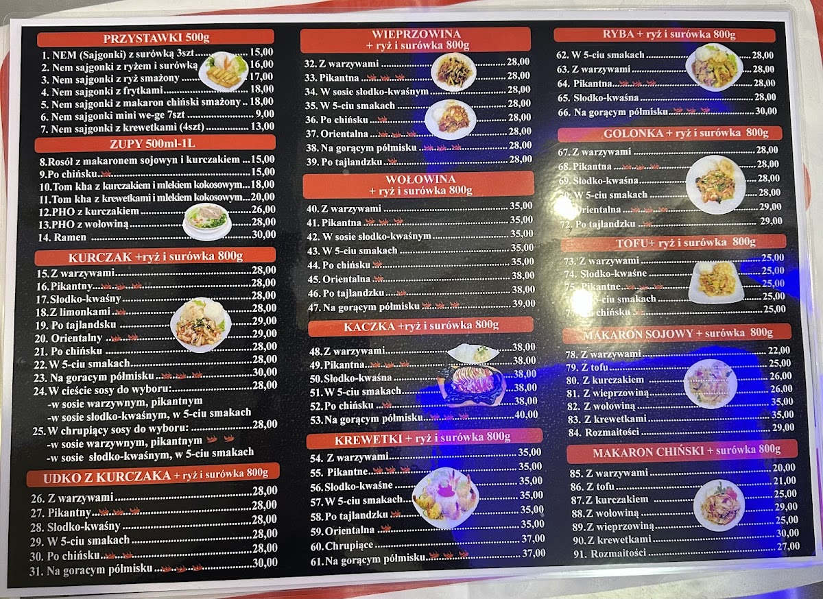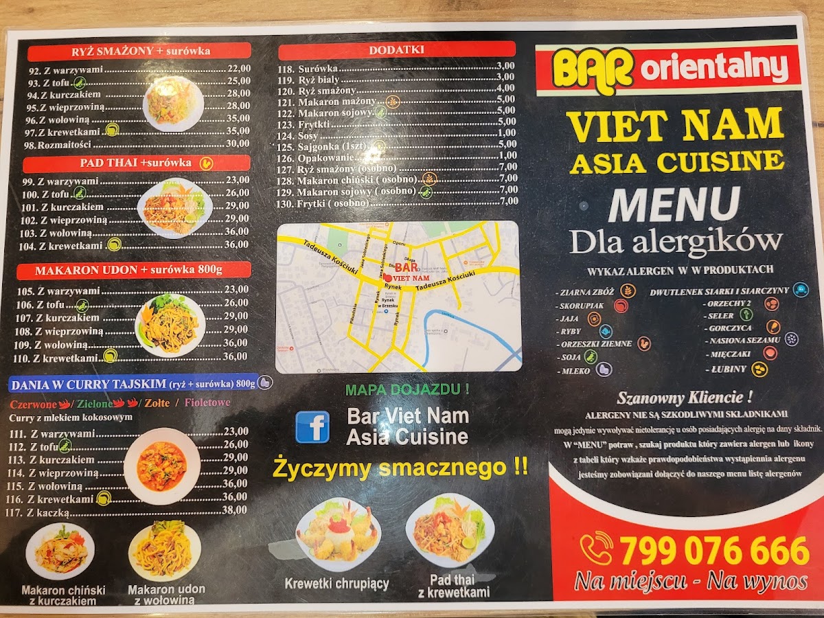 The menu at Bar Orientalny VIET NAM offers a straightforward selection of Asian dishes, designed to deliver satisfying, freshly prepared meals in a casual setting. The style feels approachable, with a focus on hearty portions and familiar flavors that suit quick lunches, relaxed dinners, or a simple bite when you’re out and about near the market square.